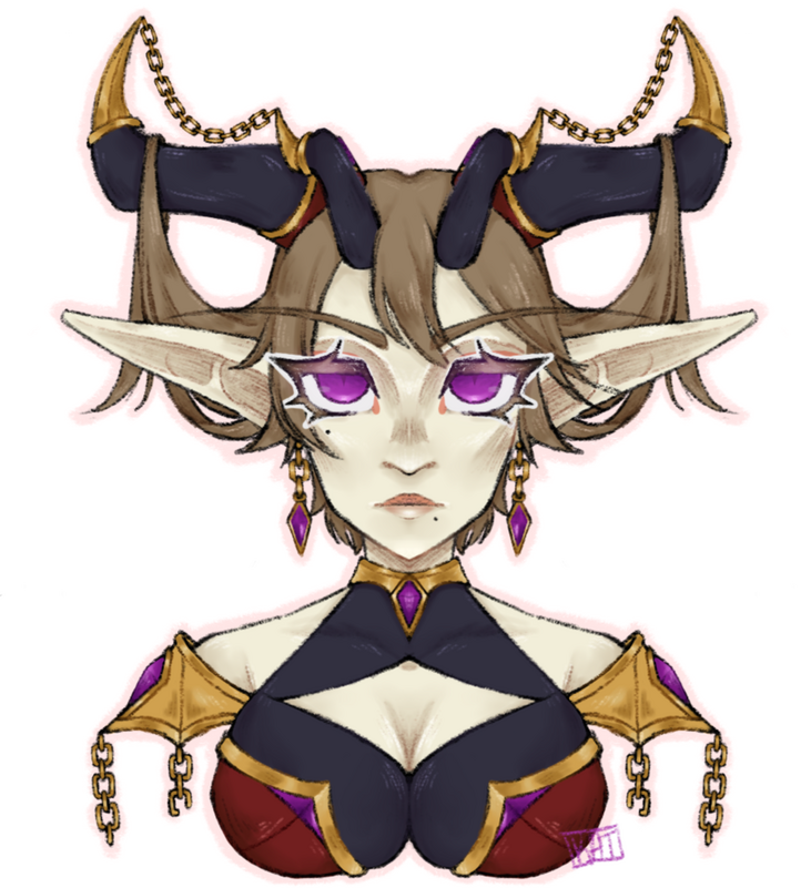 This style is a bit experimental and takes longer to complete. Consists of a lined and fully rendered character with a simple-ish background of whatever you would like, white accents and border. These are normally around thigh up for a better composition.