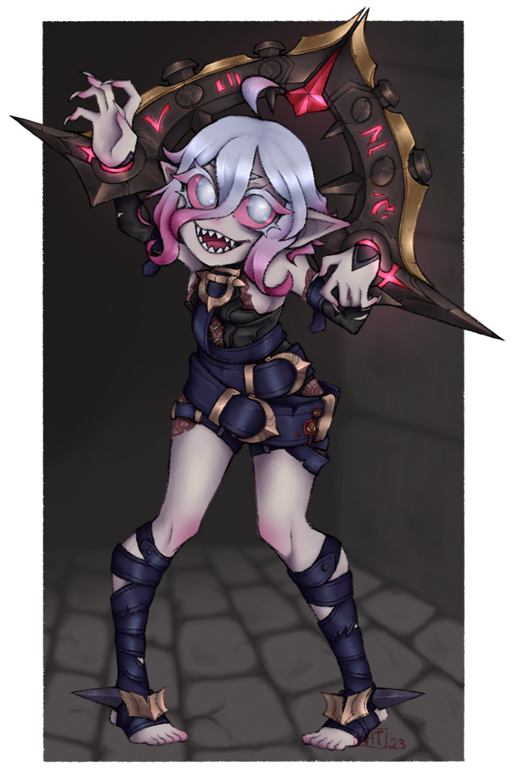 This style is a bit experimental and takes longer to complete. Consists of a lined and fully rendered character with a simple-ish background of whatever you would like, white accents and border. These are normally around thigh up for a better composition.